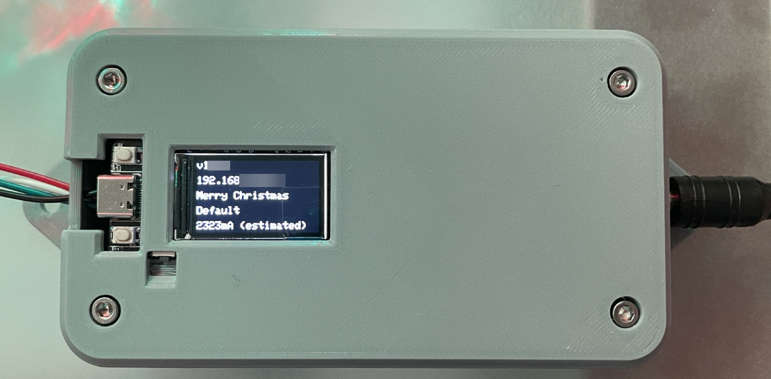 I have designed a 3D printed case around this board and an "ElectroCookie" project board, a level shifter, a buck regulator, and a DC power jack. I use 12V WS2815 LED strips for my projects, and power them with 12V power supplies, so the regulator drops the voltage to the 5V level I need to power the ESP module and the level shifter. If there is any interest in this case, which elevates the board and display on some custom extended headers to make place the screen at the top of the enclosure (with accessible buttons), let me know, and I could post the STL files. It is a bit tricky to get the height correct, so I also designed a one-time use 3D printed solder fixture to set the board in the right location and at the correct height for the housing. (It is one-time use because it has to be cut off after soldering to be able to remove it). I didn't think the effort to make it in multiple pieces was worthwhile.